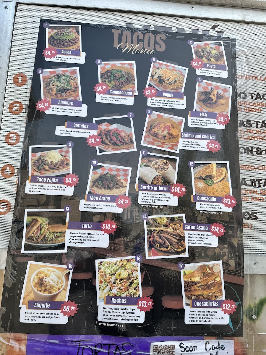 Variety: Indulge in an array of taco choices, along with well-crafted burritos packed with fresh ingredients like guacamole, pico de gallo, and veggies.